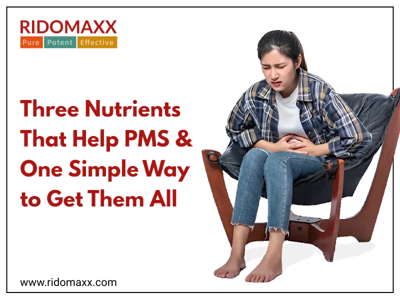 But when you need all three nutrients in one go, it may not be practical to rely just on a natural diet to fill the nutrition gaps and reduce the risk of PMS symptoms. And this is when multivitamin supplements like Ridomaxx can help.